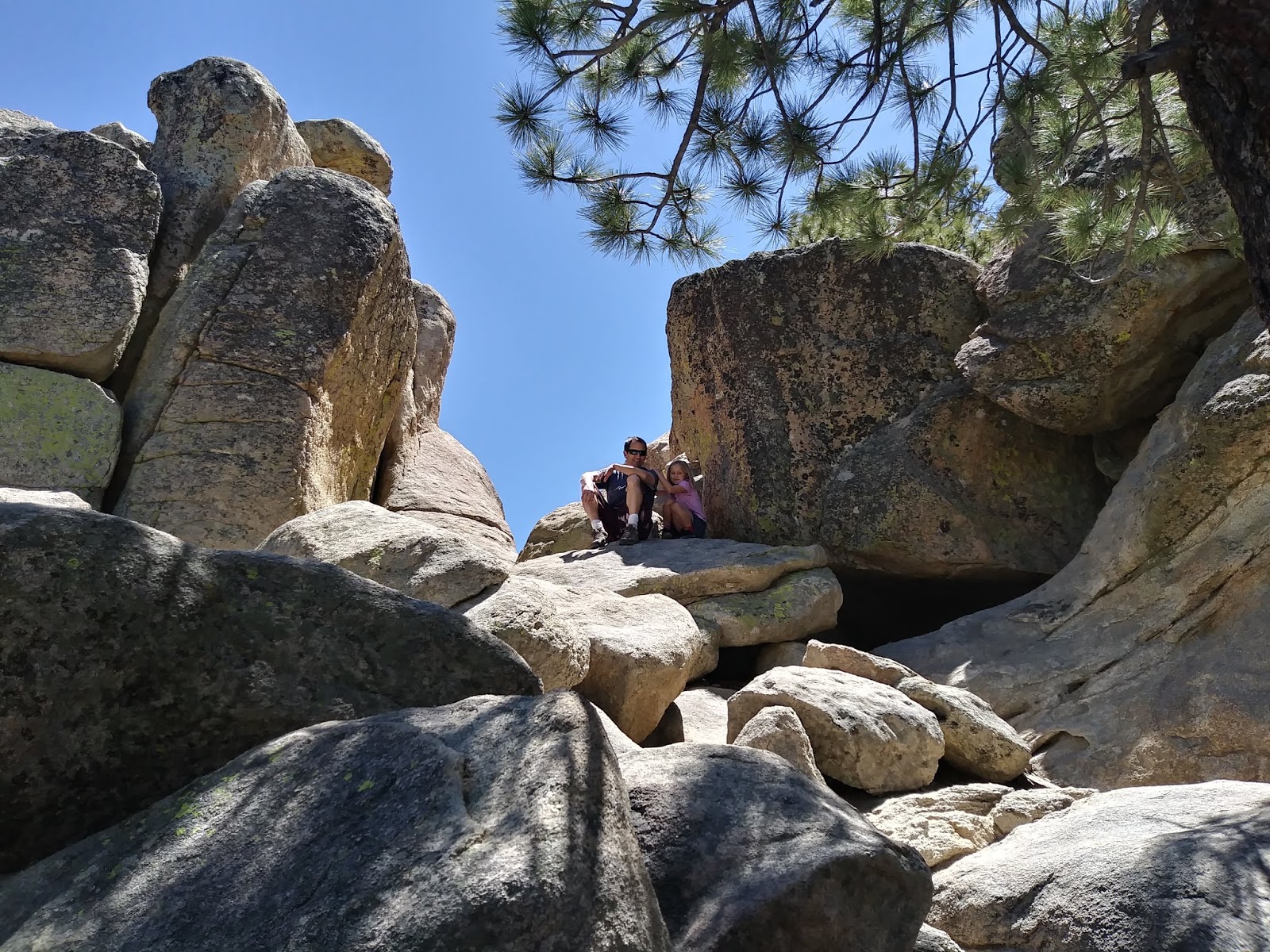 The girls climbed on lots of tall boulder piles on this hike. (I don't know how to describe all the rock formations.) I want them to be adventurous, and I like that they like to climb. I also kept thinking how easily someone could die, though, and I fear losing someone in a dumb accident. Anyway, no one fell off anything, much to my relief.